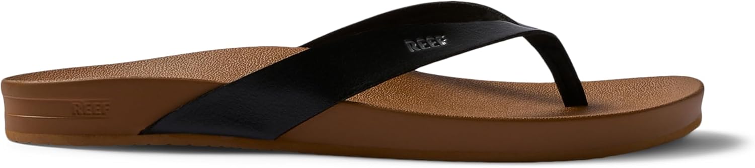 In the court of style, these rule! We made a few subtle twists to the trusty flip flop for a refined look. The strap is tapered, made of metallic vegan leather. But REEF’s signature comfort stays the same, with high-energy rebound, arch support and heel cupping.
