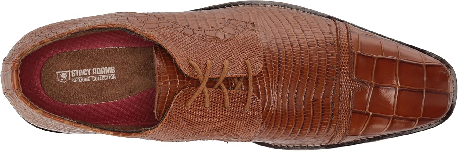 Turn some heads in the Stacy Adams Esposito Cap Toe Lace Up Oxford. Featuring a cool croco, iguana and lizard combo print leather upper and a modern stacked heel for work or weekend wear, the Esposito adds a little edge to any attire. For all-day comfort it also features a fully removable Red Zone footbed with a molded heel cup for anatomical arch support and a durable, flexible EVA outsole.